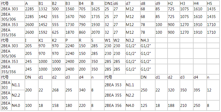 注:以上所選電機(jī)功率可在大多工況下工作。如排氣口壓力較高(0.02~0.05MPa),則應(yīng)相應(yīng)加大電機(jī)功率;如2BEA水環(huán)式真空泵正常工作時(shí)軸功率較小,也可選用接近軸功率的電機(jī)功率,如此更為節(jié)能。