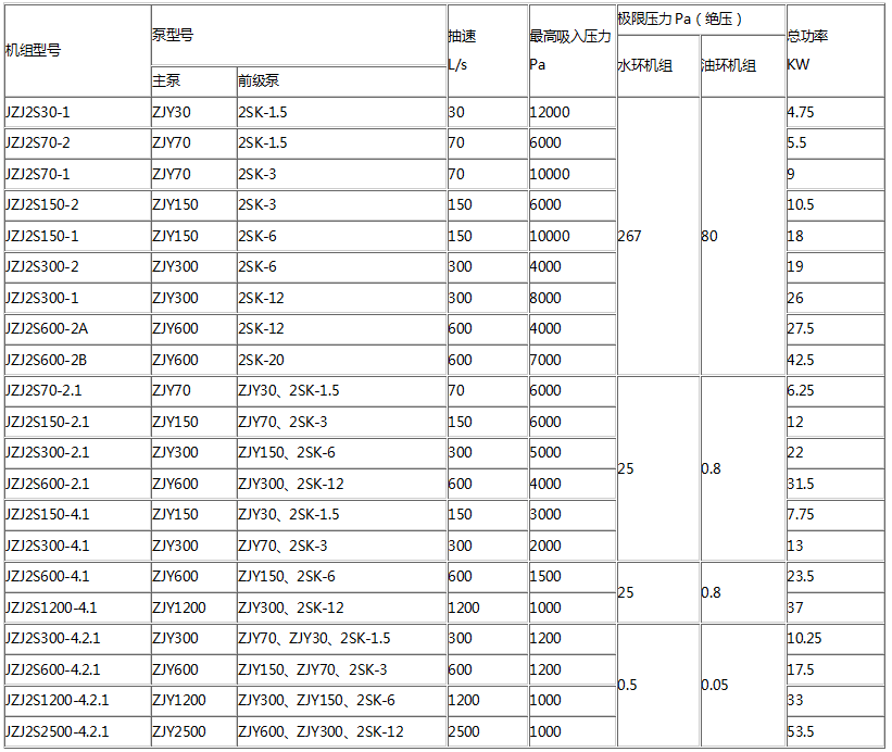注:1.以上表格為行業推薦標準系列,因在實際生產應用中工作條件的不同,吸入氣體壓力會發生很多變化,所以在選型時應根據實際抽氣過程、氣體釋放過程、可疑氣體冷凝情況、吸入壓力的變化時間等進行校核計算或參照現有設備使用情況選型。